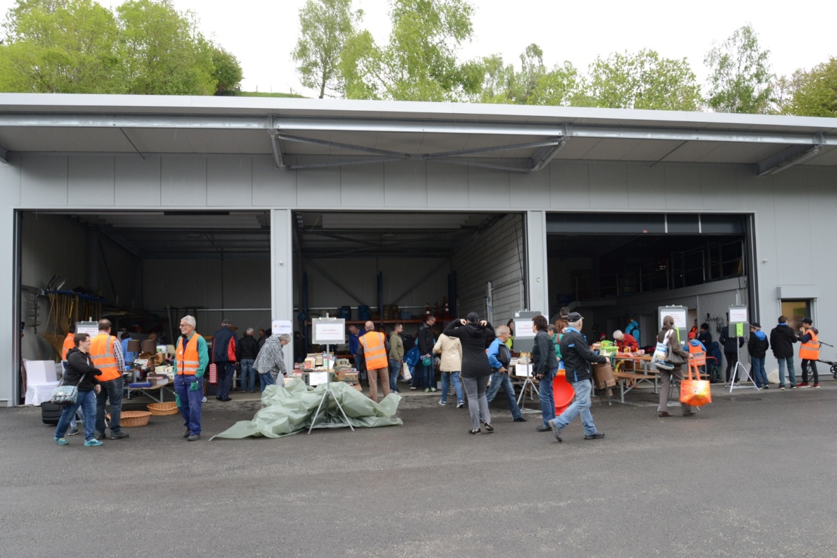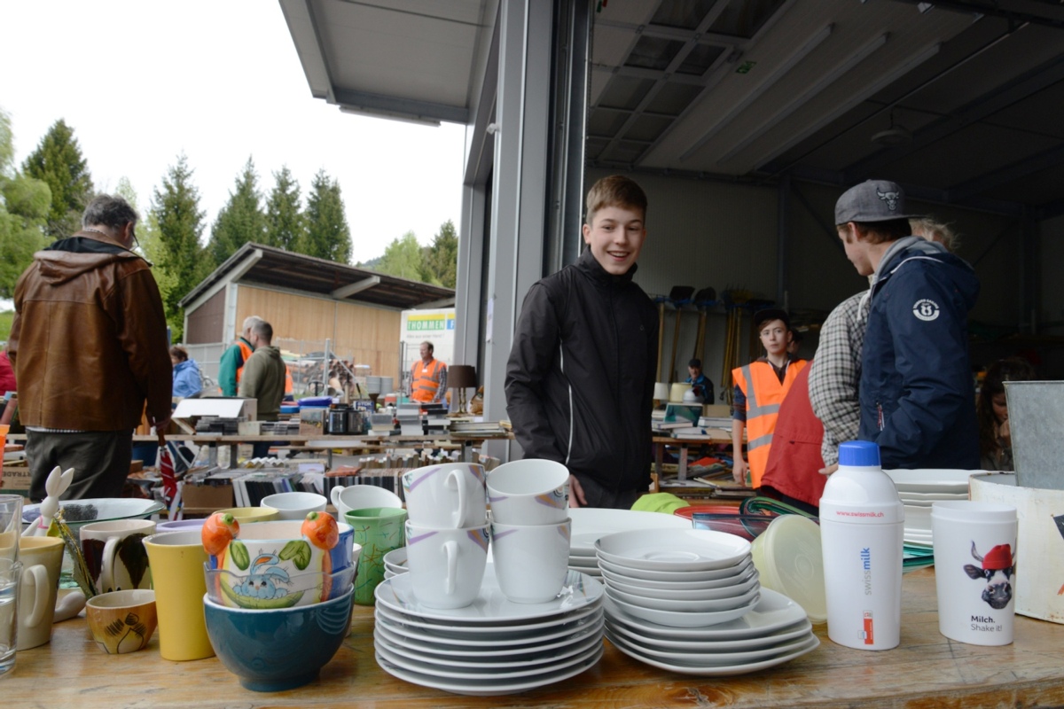Gemeindeschreiber Oliver Zbinden, der vor Ort in oranger Leuchtweste das Geschehen verfolgt, scheint zufrieden mit dem Angebot: "Die Leute haben sehr viele, noch gute Gegenstände, gebracht", sagt er. Nur wenig hätte die Warenkontrolle abweisen müssen. Zum Beispiel eine Ladung Ziegel.