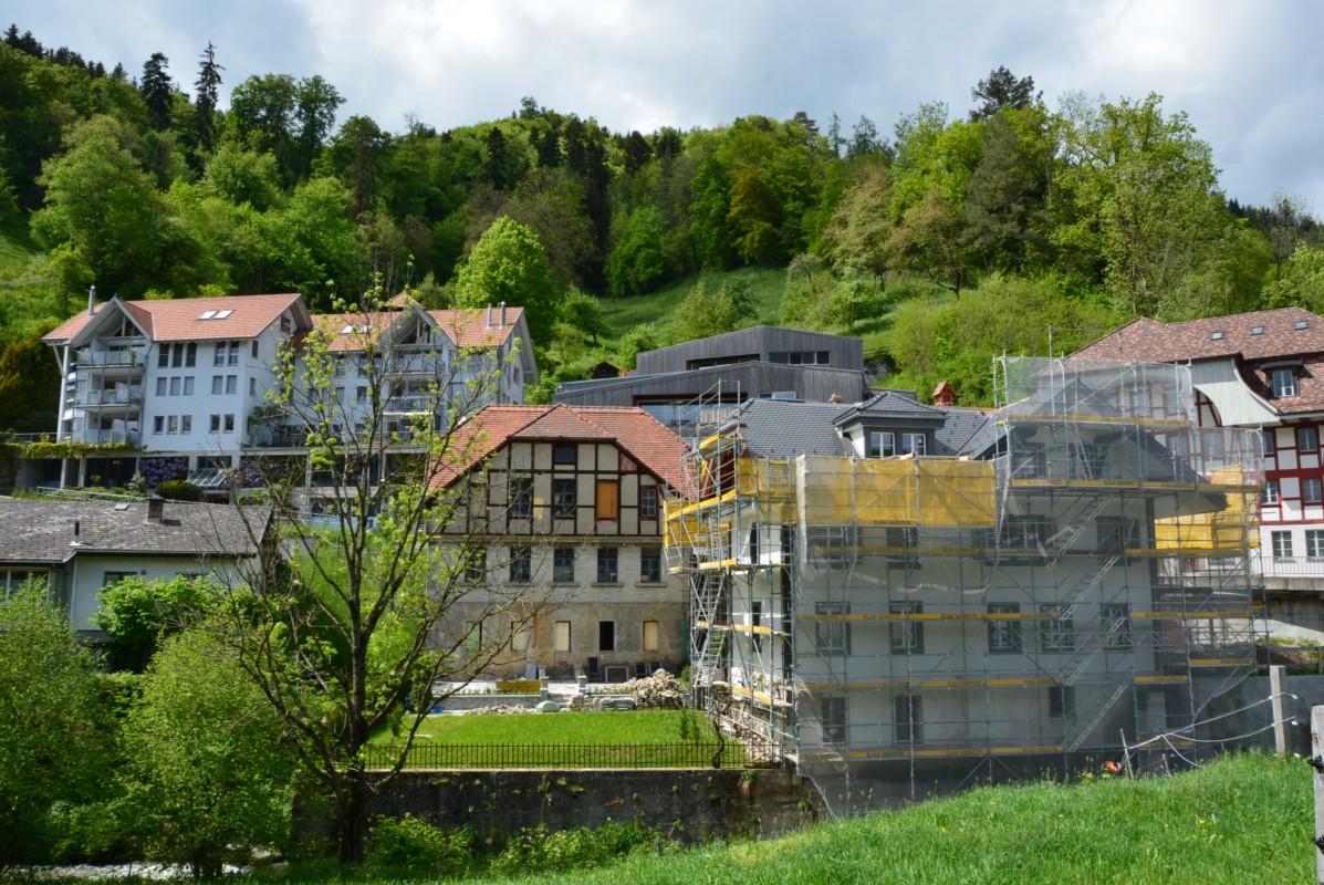 Dabei wollte er Oberdiessbach etwas Spezielles bieten. Im Haus gegenüber des Bahnhofs war während Jahren eine Fabrik beheimatet. Bis vor 40 Jahren wurden dort Öfen hergestellt, danach liess man das Gebäude langsam verfallen. Theo Zingg hat die beiden Häuser in baufälligem Zustand vor zwei Jahren gekauft. Seine Idee war, im ehemaligen Fabrikhaus die oberen Stockwerke zu renovieren und dort drei Wohnungen einzurichten. Im Fabrikraum plant er ein Event-Lokal, bestückt mit alten Maschinen.