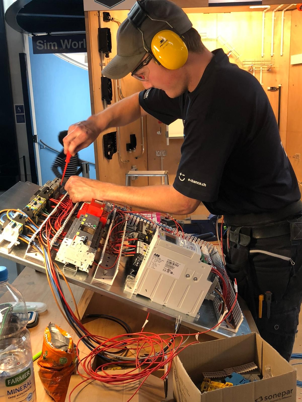 Die Hauptaufgabe war, an drei Wänden und einer Decke verschiedene Teile zu montieren und installieren. Dafür haben wir einen Plan bekommen, was wir alle machen mussten. Zum Beispiel einen Schrank verdrahten, Lampen und Steckdosen anbringen und noch vieles mehr.