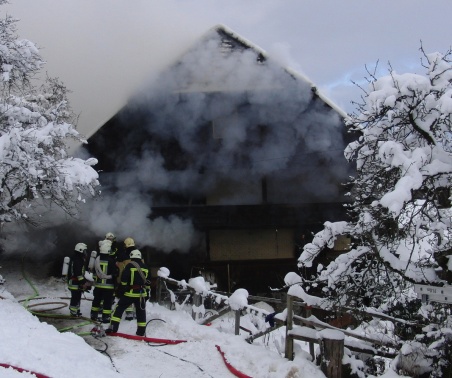 Vor Ort musste eine starke Rauchentwicklung aus dem aus einem Wohn- und Ökonomieteil bestehenden Haus festgestellt werden.