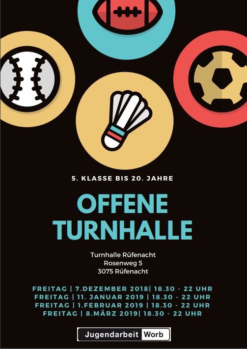 Hat du Lust am Freitag Abend ein wenig Sport zu treiben oder einfach mit deinen Freundinnen und Freunden in der Turnhalle zu chillen? Dann komm doch vorbei und verbringe ein tollen Abend. Wir freuen uns auf dich! Das Jugendarbeiter Team