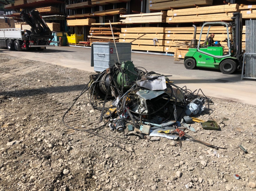 Am Ende ging alles viel schneller als geplant. Als die "Worber Post" und BERN-OST am frühen Montagnachmittag zur vereinbarten Zeit auf dem Gelände der OLWO Worb ankamen, war das Spektakel schon vorbei. Vom Kran war nur noch ein kleiner Haufen Alteisen übrig.
