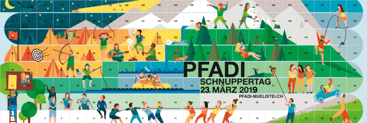 Wir öffnen unsere Türen für alle Interessierte. Sei am 23. März 2019 dabei und tauch ein in die Welt der Pfadi! Teilnehmen können alle Kinder im Kindergarten und im Schulalter. Voranmeldung nicht nötig.