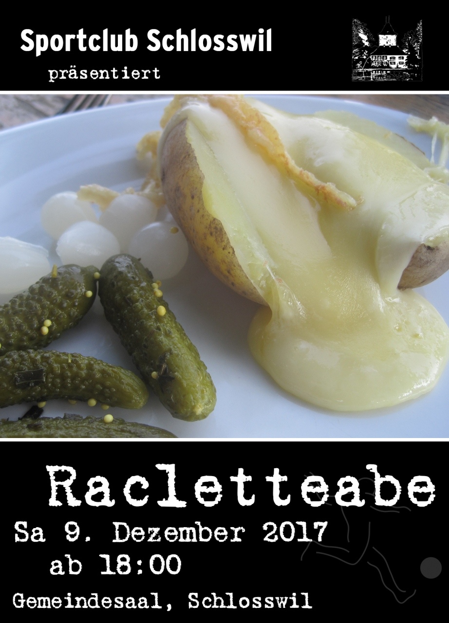 Der traditionelle Racletteabe des SC Schlosswil findet in diesem Jahr am 9. Dezember statt. Wir heissen alle ab 18:00 Uhr im Gemeindesaal in Schlosswil willkommen.