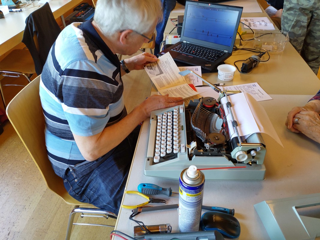 Schön gleichmässig verteilten sich die eintreffenden Geräte. Das Spektrum der Gegenstände war gross. Am meisten kamen Küchengeräte und Staubsauger. Dazu ein Bijou - eine Handnähmaschine - aber auch Radios, CD-Player, eine alte Schreibmaschine und ein Kindertraktor. Das gut eingespielte Team konnte mit seiner wertvollen Arbeit wieder einige Gegenstände vom Wegwerfen bewahren. Das Bibliothek-Team bewirtete wie gewohnt die Besuchenden und war mit einem Angebot an Büchern vor Ort.