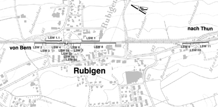 Rubigen - Lärmschutzwände durch das ganze Dorf