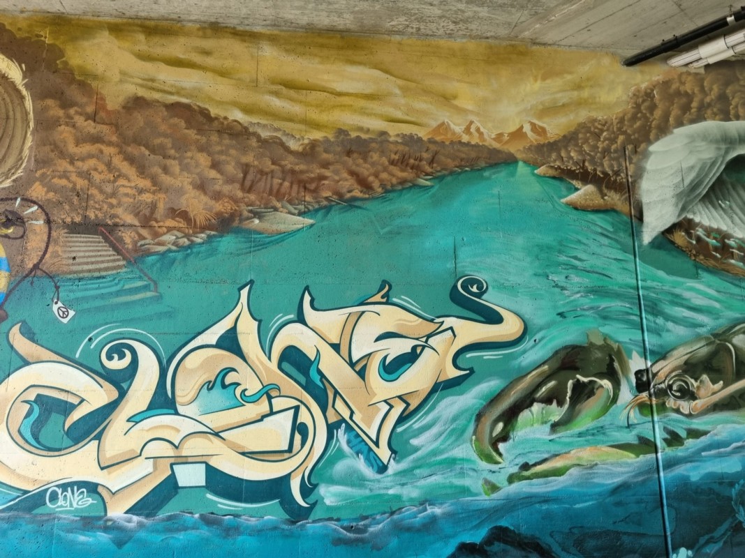 Seit vergangenem Wochenende schmückt ein eindrückliches StreetArt-Bild die Unterführung der Hunzikerbrücke zwischen Rubigen und Belp vis-à-vis von der Fischzucht. BERN-OST hat recherchiert, wer hinter den Graffiti-Kunstwerken steht und was die Gemeinde Rubigen damit zu tun hat.