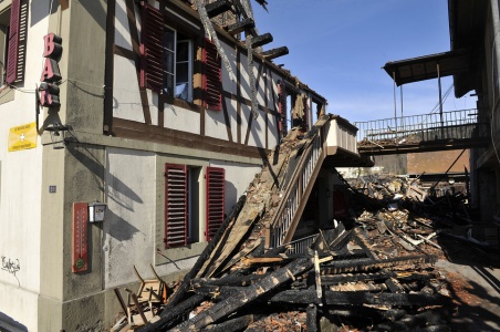 Allzu lange dürfte es nicht mehr dauern, bis auf dem Sonne-Areal der Brandschutt weggeräumt wird. Gemäss Rolf Stöckli, Leiter der Worber Bauabteilung, braucht es für den Abbruch keine Bewilligung, weil die Gebäude durch den Brand zerstört wurden.