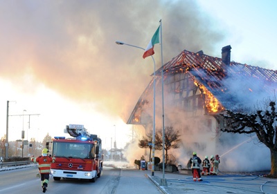 Der Brand im Restaurant Sonne an der Worbstrasse in Rüfenacht war am Montag, 6. Februar 2012, kurz vor 16.30 Uhr gemeldet worden. Beim Eintreffen der Einsatzkräfte befand sich das Gebäude bereits im Vollbrand.