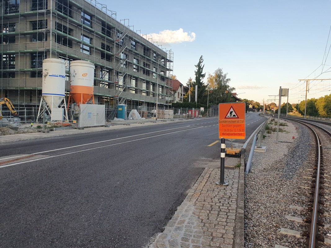 Von Samstag, 11. Juli um 6 Uhr bis Sonntag, 12. Juli um 6 Uhr ist die Strasse für den Belagseinbau gesperrt. Die signalisierte Umleitung für den motorisierten Verkehr führt ab Muri-Gümligen via Allmendingen, Rubigen nach Worb und umgekehrt. Bei schlechtem Wetter werden die Arbeiten auf die Folgetage verschoben.