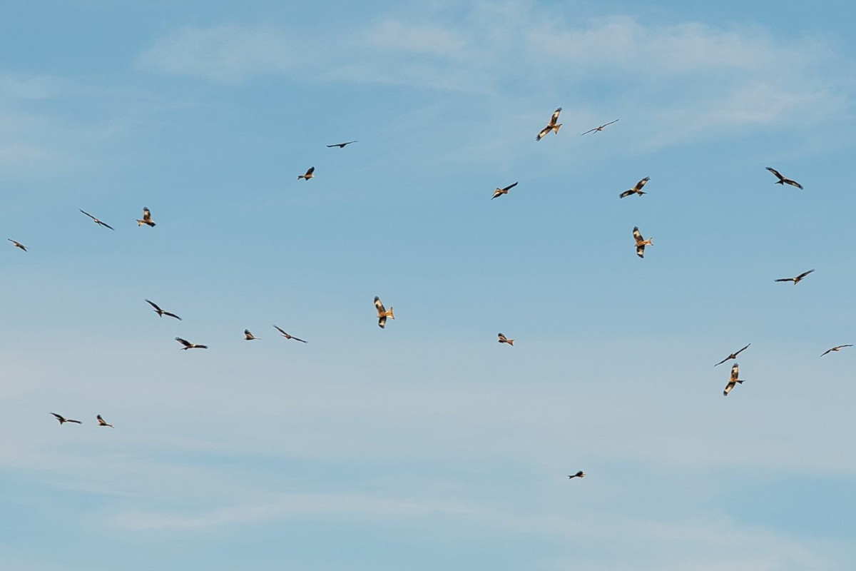 Tagsüber begeben sich die Rotmilane oft allein auf Futtersuche. Es sei jedoch möglich, dass eine hohe Anzahl in einem bestimmten Gebiet, die Nahrungssuche erleichtere. "Milane schauen sich nämlich nicht nur nach Beute oder Aas um. Sie halten immer auch ein Auge auf Artgenossen in der weiteren Umgebung."