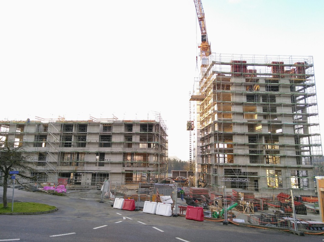 Das Zentrum Sonne in Rüfenacht entwickelt sich: Seit Kurzem stehen die Gebäude in voller Höhe.