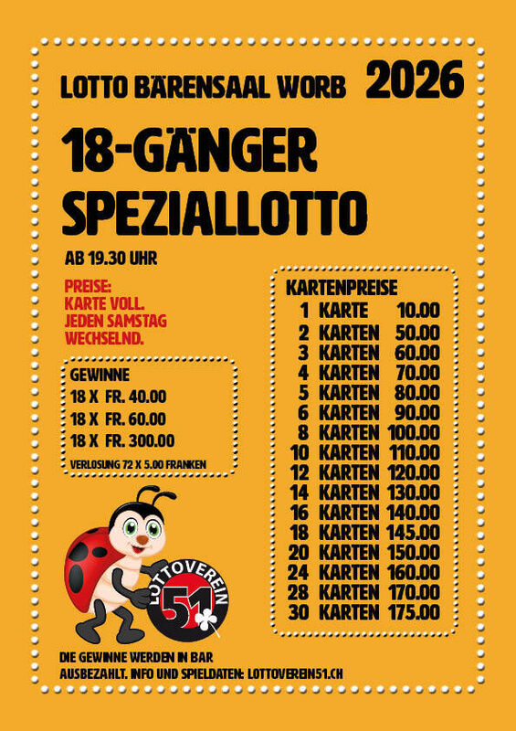 Aktueller Jackpot unter www.lottoverein51.ch