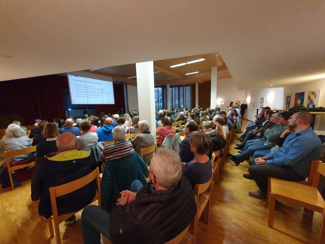 Eine Frau steht auf: "Ich bin 2018 hier hergezogen und es hiess, es sei sicher, dass die Kinder hier zu Schule gehen können. Ich bin enttäuscht über diesen kurzfristigen Entscheid. Das gibt kein gutes Gefühl. Ich möchte Ihnen ans Herz legen: So sollte man nicht mit Mitmenschen umgehen. Das ist sehr schade. Ich werde diesen Sommer wegziehen." Applaus. Christine Hofer: "Ich nehme mir das zu Herzen."