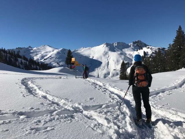 Mitbringen: gutes Schuhwerk, Wander- oder Skistöcke mit Tellerli, evtl. Kopfbedeckung, Ersatzkleider und Getränk. Schneeschuhe werden abgegeben.