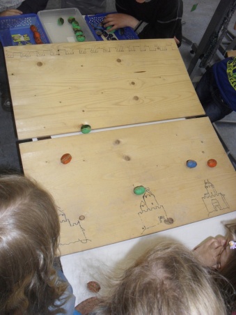 Diese Woche steht nun ganz im Zeichen des Mittelalters, "In der Arnisäge sind alle vom Kindergarten bis zur 9. Klasse mit dem Aufbau und den Festvorbereitungen beschäftigt. Die Kleinsten richten die Ritter- bzw. Kaffeestube ein, die 5. und 6. Klässler bauen das Stadttor und die Oberstufe bereitet die ganze Verpflegung vor." In Landiswil und Obergoldbach werden Löffel geschnitzt, Familienwappen genäht, Leder verarbeitet und Körbe geflochten. Und alle bereiten ihre Verkleidung vor. Denn: Wenn sich am Samstag alle in der Arnisäge treffen, kommt niemand mehr im Alltagsgewand.