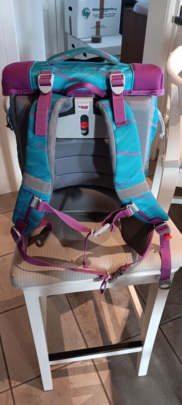 Der Schulrucksack kann an die Körpergrösse des Kindes angepasst werden. Er bietet viel Stauraum für Schulmaterial, Znüni etc.