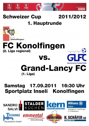 In der 1. Hauptrunde des Schweizer Cup trifft der FC Konolfingen auf den 1. Ligisten Grand-Lancy FC aus Genf. Der FCK und das Team der Festwirtschaft freut sich auf Ihren Besuch!