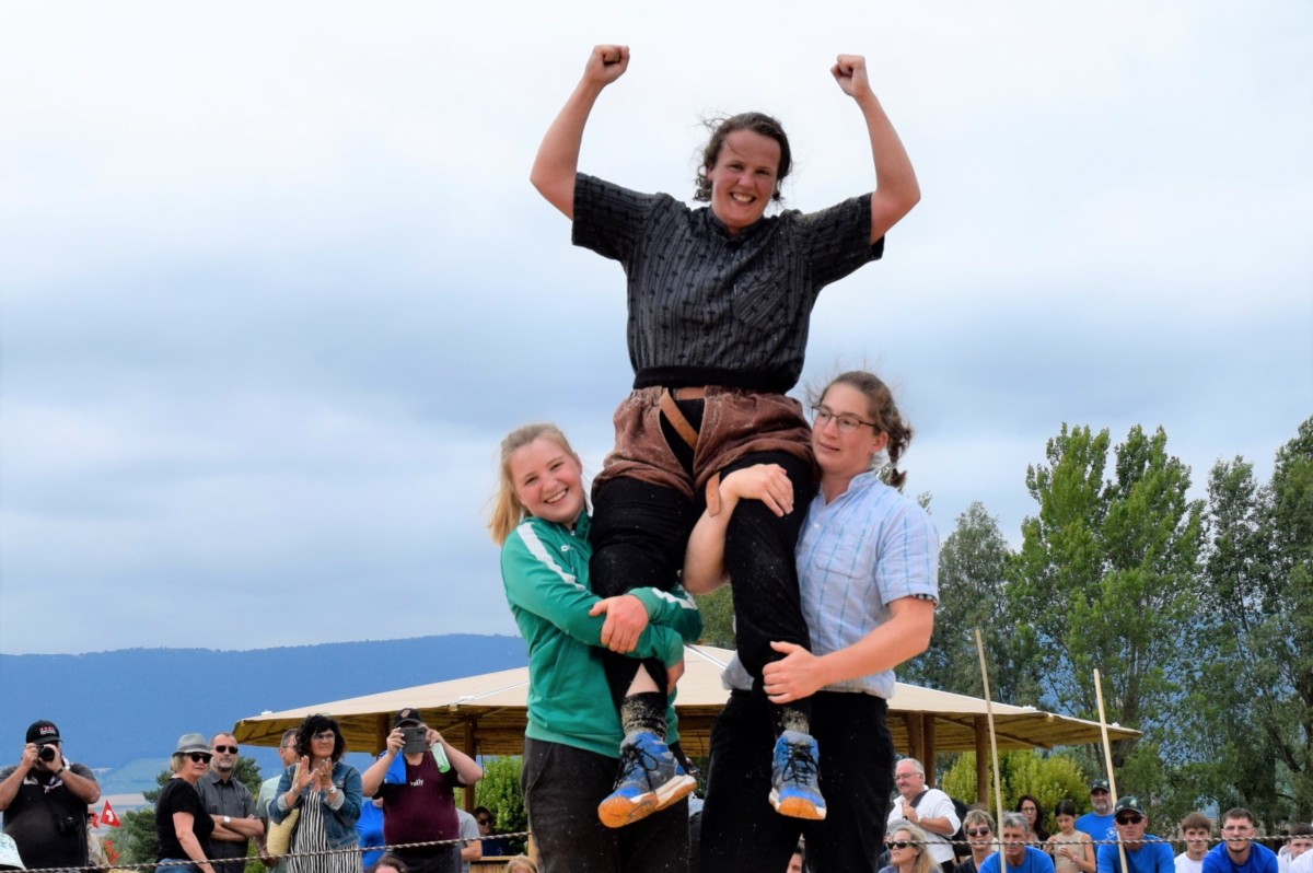 Jasmin Gäumann aus Häutligen hat innert einer Woche das zweite Kranzfest gewonnen. Nach Tramelan siegt sie auch am Frauen- und Meitlischwingfest in Estavayer.