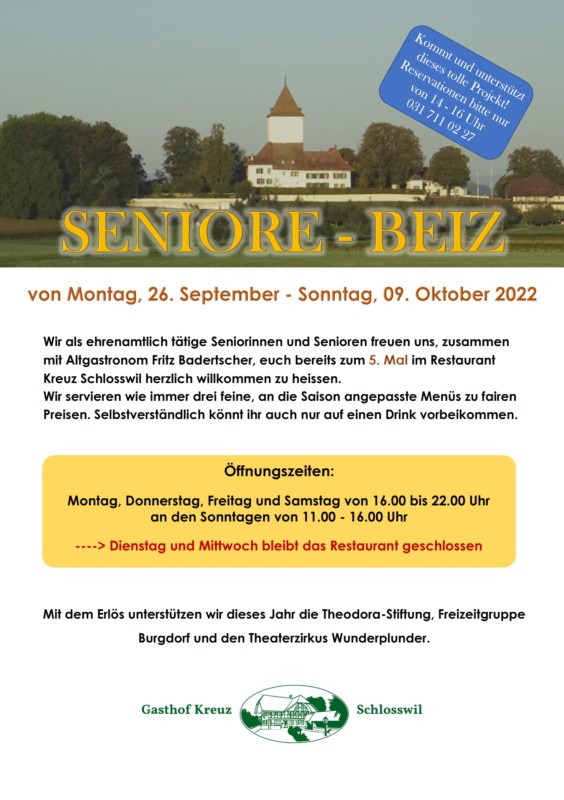 Reservationen bitte nur von 14 - 16 Uhr 031 711 02 27