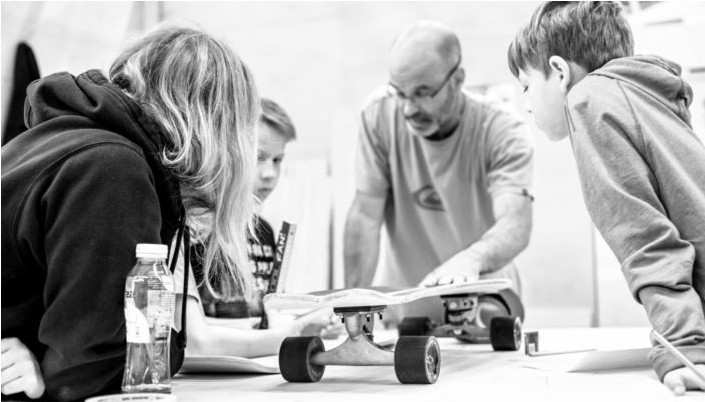 Unter fachkundiger Leitung baust du dein eigenes Skateboard oder deinen Carver. Aus einem vorgepressten „Blank“ aus Holz, sägen, fräsen und schleifen wir gemeinsam dein persönliches Skateboard.