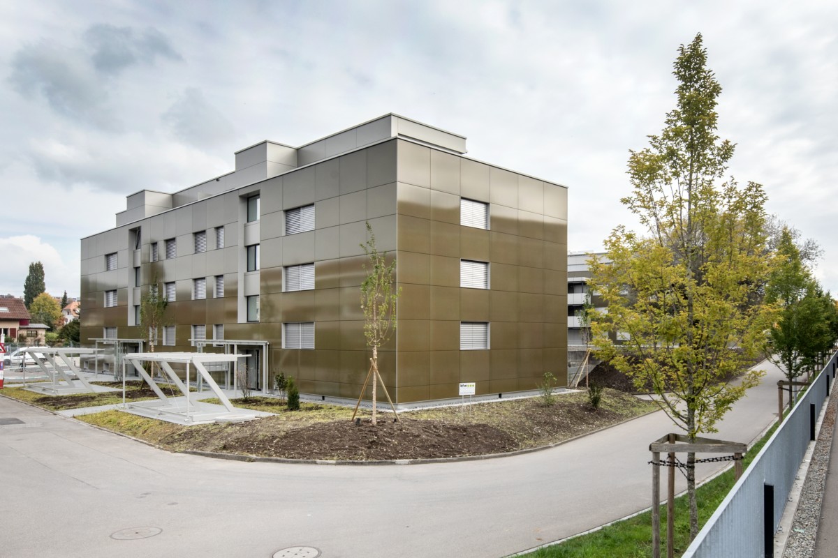 Bei den Mehrfamilienhäusern handelt es sich um Plusenergiegebäude. "Dies bedeutet, dass die Überbauung jährlich mehr Energie für Heizung, Warmwasser, Lüftung und Strom erzeugt, als sie verbraucht - vorwiegend durch die Gewinnung von Solarenergie, erzeugt durch Photovoltaik auf den Dächern und an den Fassaden", schreiben die SKS Architekten AG aus Bern. Der Neubau sei Minergie A zertifiziert.