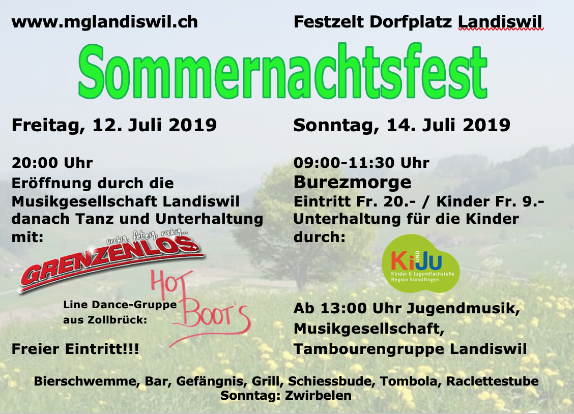 Ab 13:00 Uhr Unterhaltung mit der MG, JM und Tambourengruppe Landiswil
