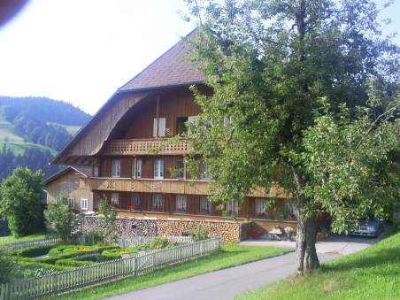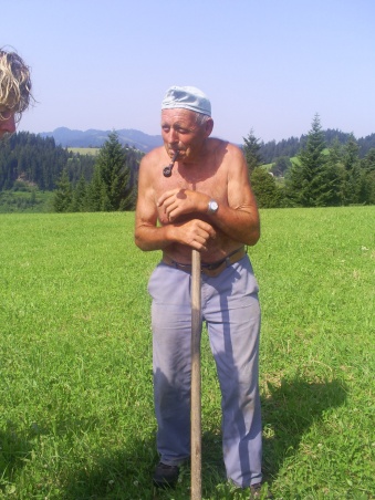 Die Familie Widmer, die wir jetzt besuchen, wohnt auch so stotzig. Es ist derart steil, dass man „schier no d Hüener mues bschlah“, dass sie am Bord nicht abrutschen. D Härdöpfu muss man sowieso mit dem Flobert setzen…