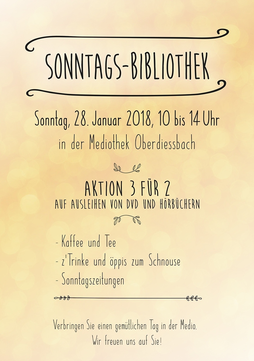 28.01.2018 verbringen Sie einen gemütlichen Sonntag in der Mediothek Oberdiessbach