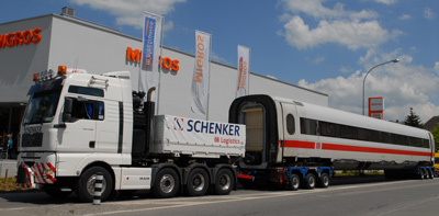 Spektakulärer Schwertransport durch die Region BERN-OST: Zwei beschädigte Wagen des in Thun verunglückten ICE-Zuges der Deutschen Bahn sind auf zwei speziellen Schwertransportfahrzeugen quer durch die Region BERN-OST transportiert worden. D