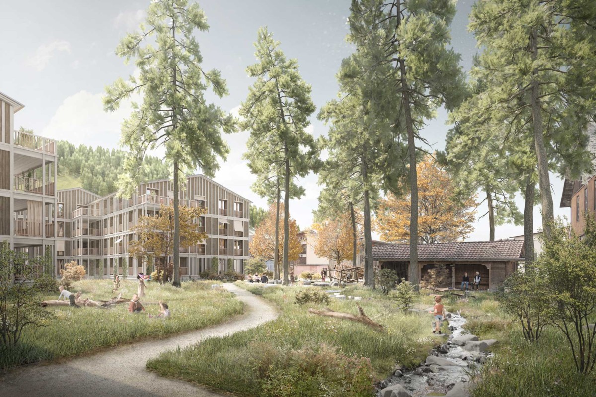 Die Zürcher Bau- und Immobilienfirma Halter AG will hinter dem Sternen in Worb bauen. Wo heute ein kleiner Park und eine grosse Brache liegen, ist eine dichte Überbauung vorgesehen: Drei dreiteilige Mehrfamilienhäuser mit insgesamt 84 Wohnungen, bis zu vier Geschosse hoch. Direkt hinter dem Gasthof ist ein öffentlich zugänglicher, 1500 m2 Quadratmeter grosser Spielplatz geplant und am anderen Ende der Parzelle eine 600 m2 grosse Rasenspielfläche. Vorgesehen ist eine naturnahe Gestaltung mit unversiegelten Flächen, der Bach, der heute in einem Kanal fliesst, bekommt mehr Platz.