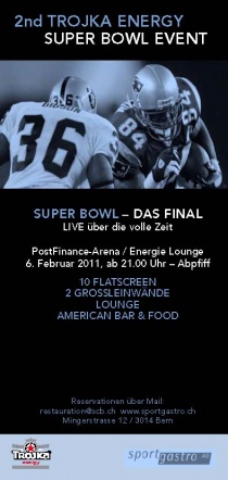 Am Sonntag 6.2. präsentiert Sportgastro AG und Klösterli Pub in der PostFinance-Arena in Bern den Finale des Jahres - Super Bowl American Football LIVE.
