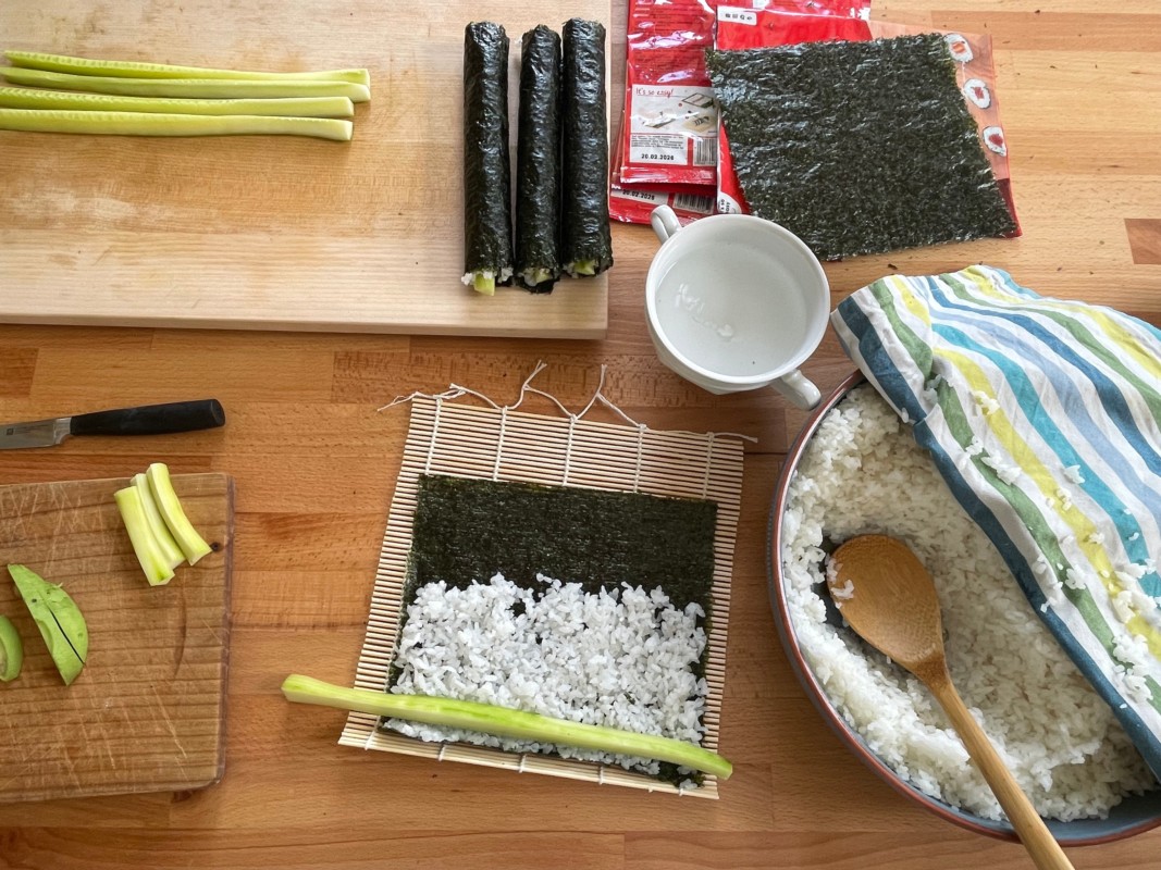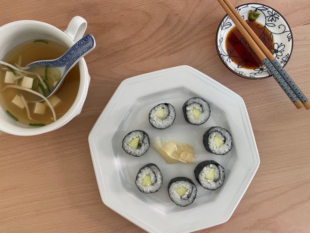 Wer hat Lust, gemeinsam mit anderen die eigenen vegetarischen Sushis/ Makis zu machen und anschliessend gemeinsam zu geniessen? Dazu gibts es eine Miso Suppe mit Seidentofu und Gurken Salat.