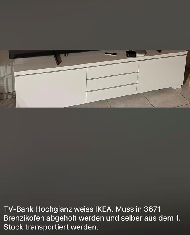Das TV Möbel muss in 3671 Brenzikofen abgeholt werden und selber aus dem 1. Stock transportiert werden.