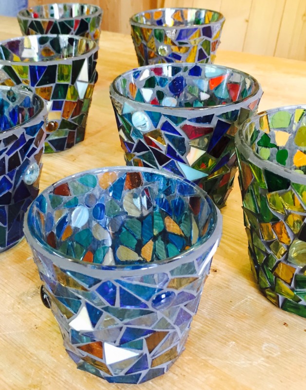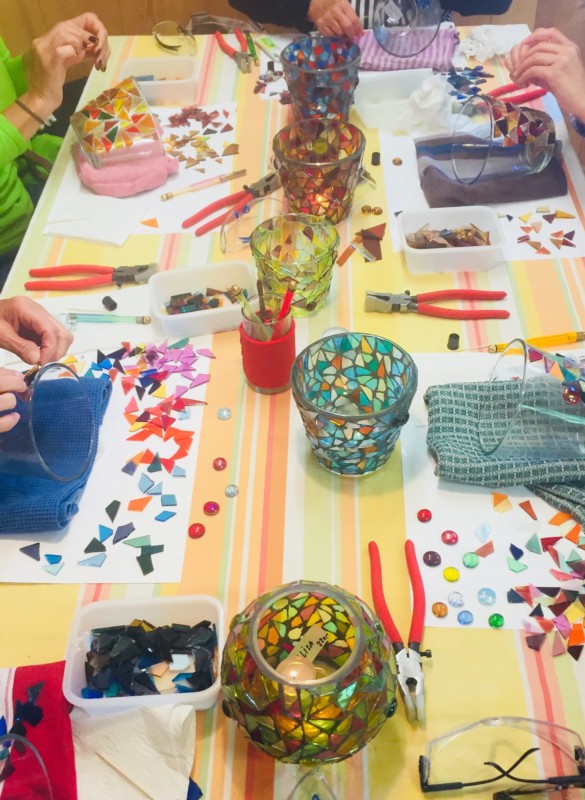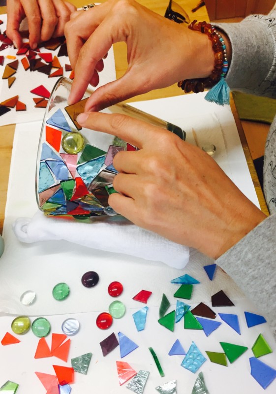 Kreiert gemeinsam je ein Seelenlicht (Mosaiklicht) aus Antikglas.