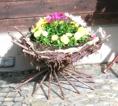 Unter kundiger Anleitung erstellen Sie einen Mikadokorb aus Birkenreisig und Weidenstecken. Den Mikadokorb können Sie daheim nach belieben bepflanzen