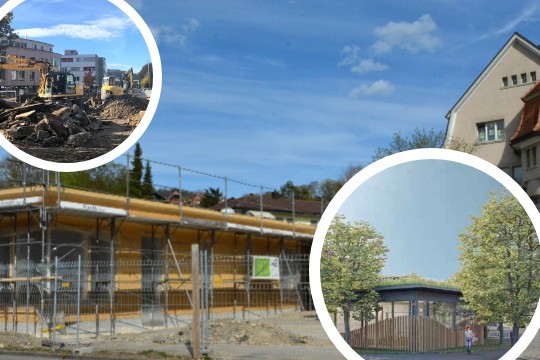 Fertig ist die Tagesschule damit natürlich noch nicht. Aktuell sind die Elektriker und Sanitäre an der Arbeit. Wenn alle Leitungen verlegt sind, werden die Innenwände isoliert und verkleidet, dann die Heizung und der Unterlagsboden eingebaut. Danach kommen Fassadenverkleidung und Bedachung sowie der Innenausbau, dazu gehören Schreinerarbeiten wie die Küche, die Garderobe sowie Türen und Fenster.