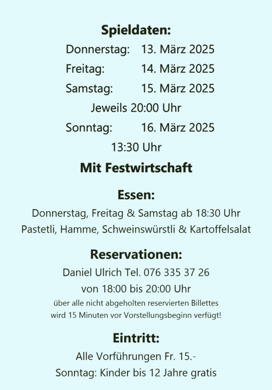 13.03.2025 bis 16.03.2025 13.03. / 14.03. / 15.03 um 20.00 Uhr & am 16.03. um 13.30 Uhr