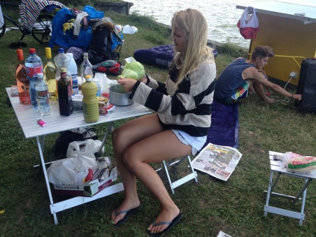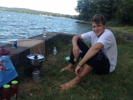 Am Abend gibt es ein weiteres Mal Teigwaren. Erstmals beginnt es kalt zu werden und wir versuchen ein Feuer zu machen. Leichter gesagt als getan: Nirgendwo lässt sich Holz auftreiben. Auf unserer Brennholzsuche treffen Dominic und ich auf dieselbe Frau, die uns schon letzte Nacht 'ausgeholfen' hat. Freundlich fragen wir sie - jetzt etwas offizieller - um einige Holzscheiter. Ihr Mann, ihre Tochter und ihr Enkel, die ganz in der Nähe um einen Gartentisch sitzen, bekommen unser Anliegen mit.