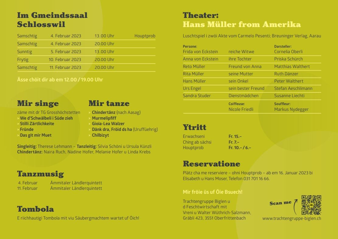 Trachtengruppe Biglen ladt y zum Konzärt u Theater
