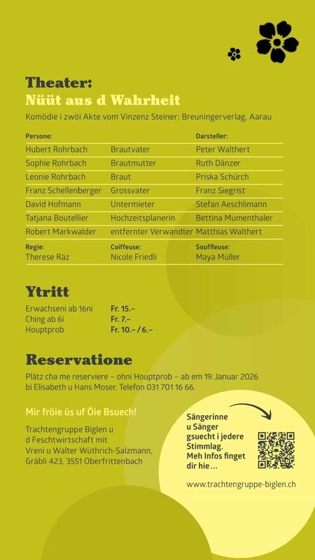 Trachtengruppe Biglen ladt y zum Konzärt u Theater