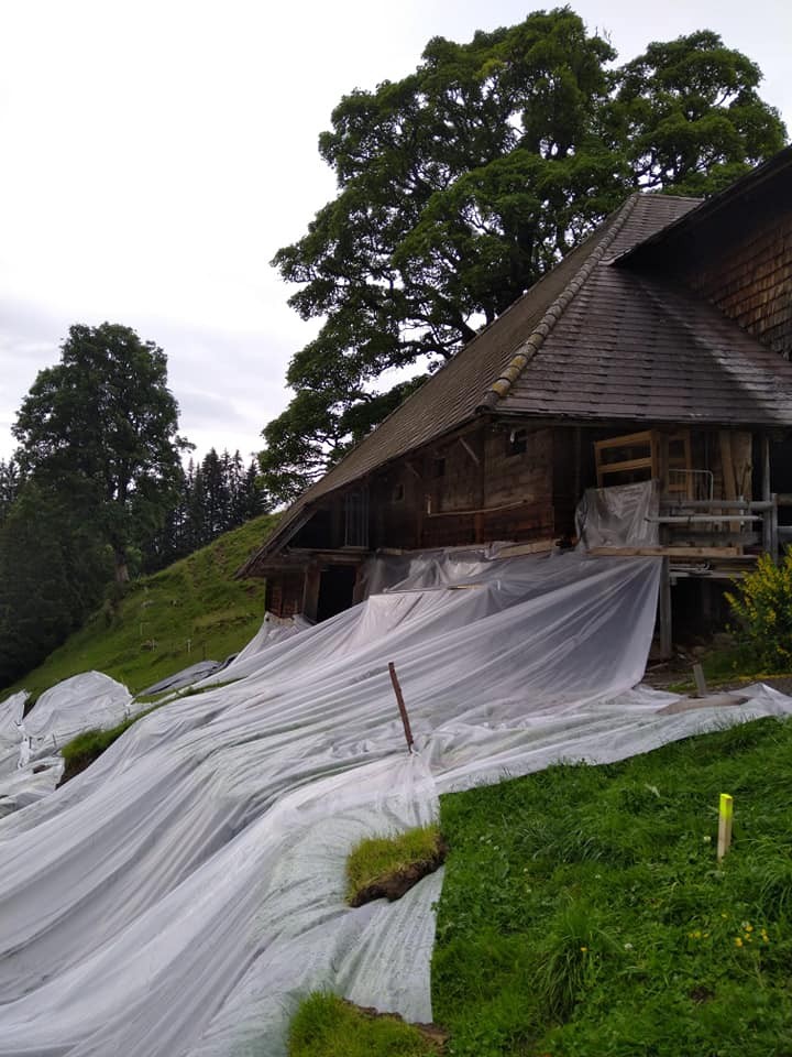 Im Sommer 2021 stürmte es im Eriz. Starke und andauernde Regenfälle weichten die Bergwiesen auf, die Alphütte einer Berner Oberländer Familie kam eines Nachts ins Rutschen. Menschen wurden keine verletzt, die Hütte aber ist nicht mehr benutzbar. Sie ist seit dem Erdrutsch zu unstabil und unsicher, um darin zu wohnen und zu arbeiten.
