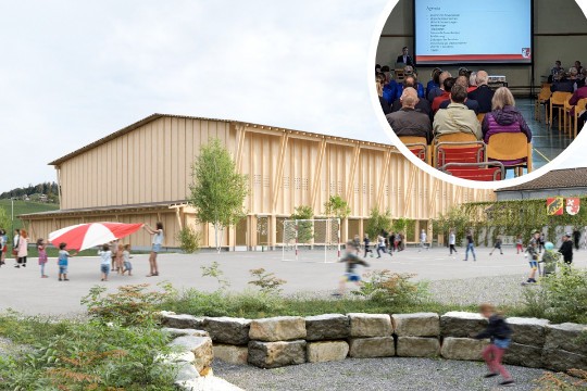 Die erwähnte Bühne gibt es allerdings, und das mit einem Plus: Anstatt wie ursprünglich gewünscht, wird sie nicht fix und nicht zum Runterklappen sein. "Es gibt ein Bühnenpodest, welches auf Rollen einfach da, wo gewünscht, in die Halle gestellt werden kann. Also auch mitten in den Raum", sagte Architekt Rolf Mühlethaler. Das schien gut anzukommen: Für die Turnvorstellung sei das sicher ganz gut, sagte eine Vertreterin des Turnvereins in der Fragerunde im Anschluss.