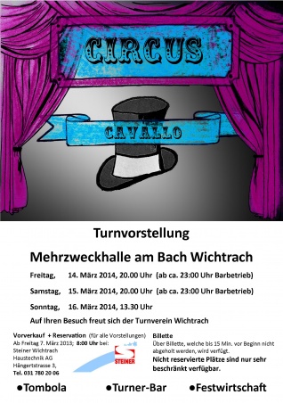 Unter dem Motto "CIRCUS CAVALLO" führt der Turnverein Wichtrach die Turnvorstellung durch und freut sich auf Ihren Besuch.