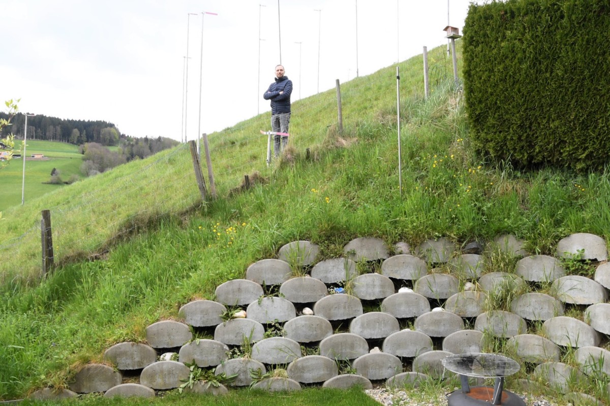 Noch stehen nur die Profile neben dem Haus von Ronny Thöni. Es ist wahrscheinlich, dass am Schafrain früher oder später gebaut wird. Wird er dann wegziehen? «Nein», sagt er, «das denke ich nicht. Irgendeinmal gewöhnt man sich dran. Wir haben das gekauft, uns passt es, die Kinder fühlen sich wohl. Früher oder später muss man sich damit abfinden.»