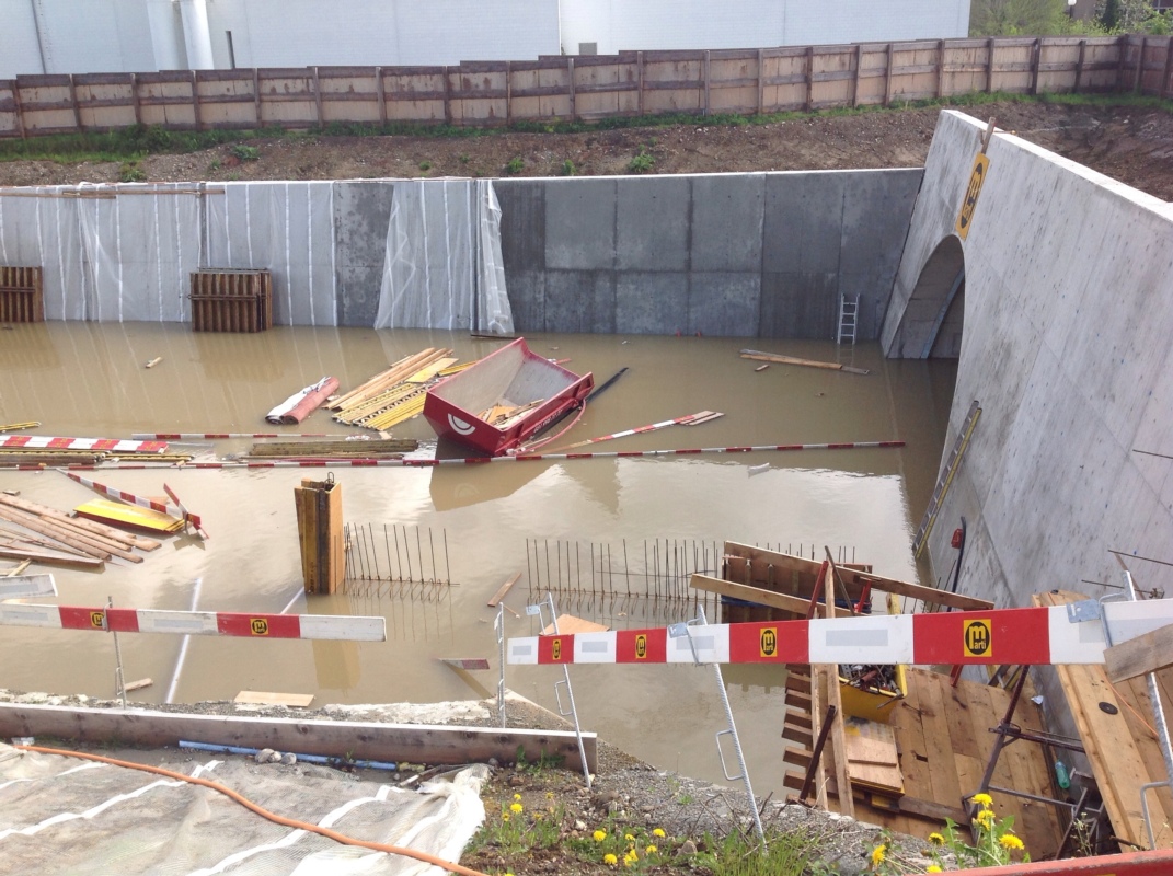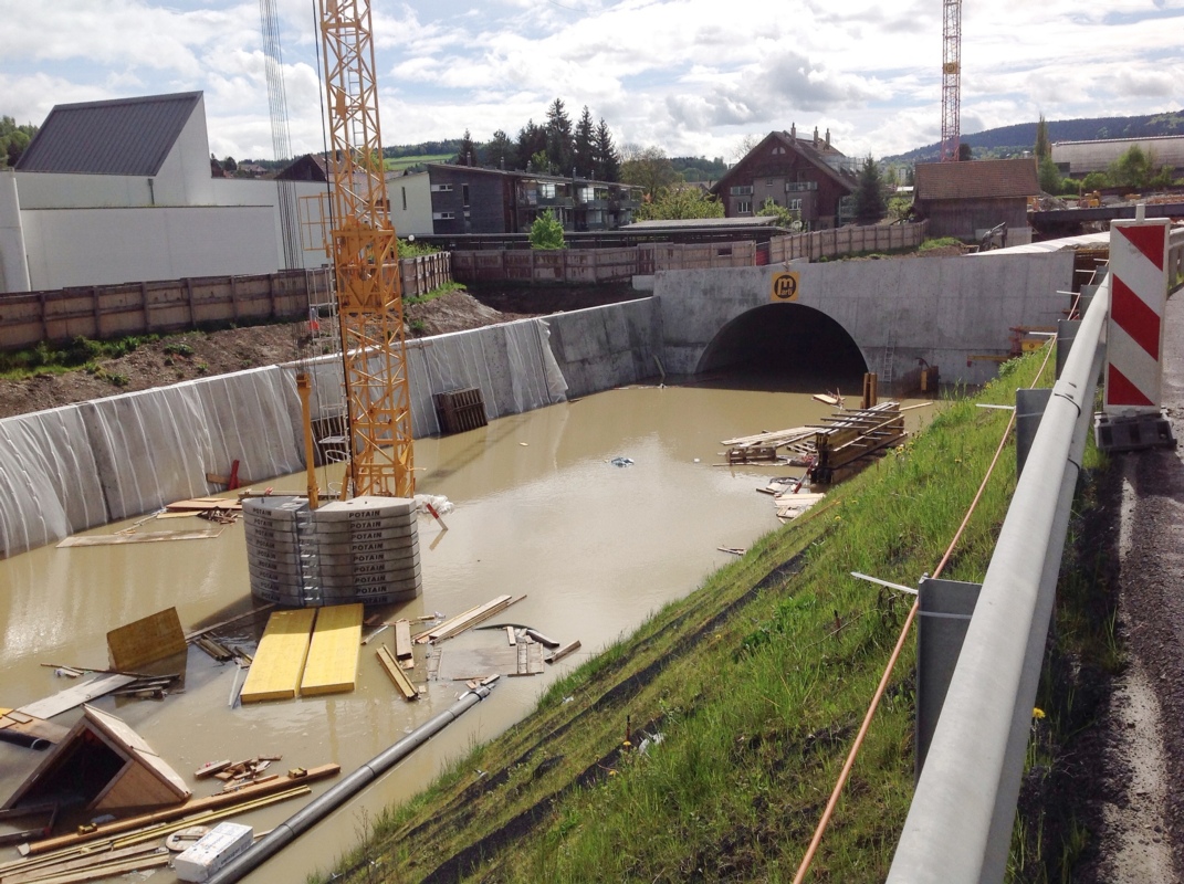 Umfahrungsstrasse Worb: Baugrube und Tunnel geflutet