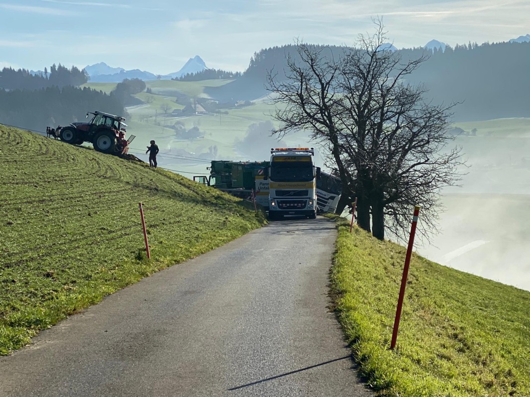 Am Mittag waren gemäss Wüthrich zwei Abschleppfahrzeuge mit der Bergung des Milchtanklastwagens beschäftigt, während zwei Traktoren das Fahrzeug mit Seilwinden sicherten.