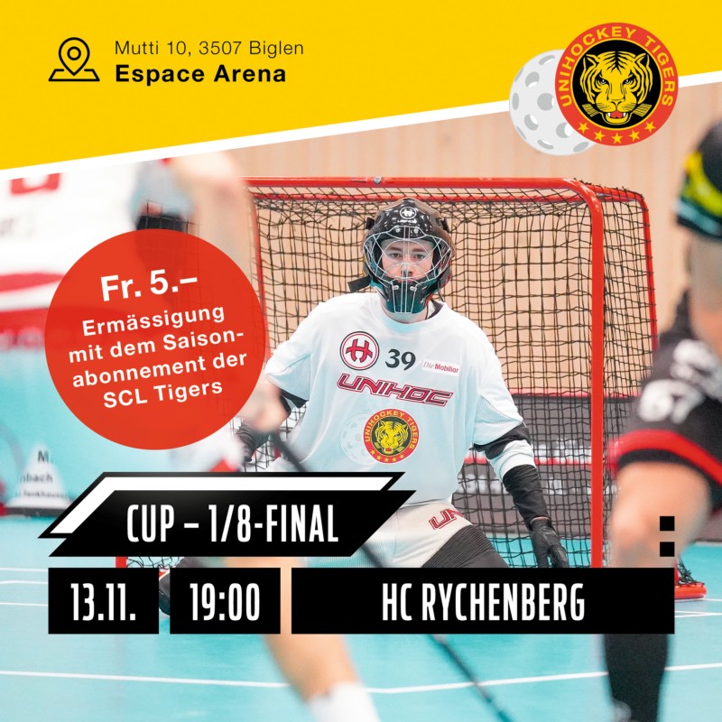 Im 1/8-Final des Unihockey Cups empfangen die Unihockey Tigers den Ligarivalen HC Rychenberg Winterthur. Setzen sich die Tigers durch und dürfen weiter von einem Cupsieg wie 2019 träumen? Für Spannung ist gesorgt, komm vorbei und unterstütze die Unihockey Tigers. Heja Tigers!