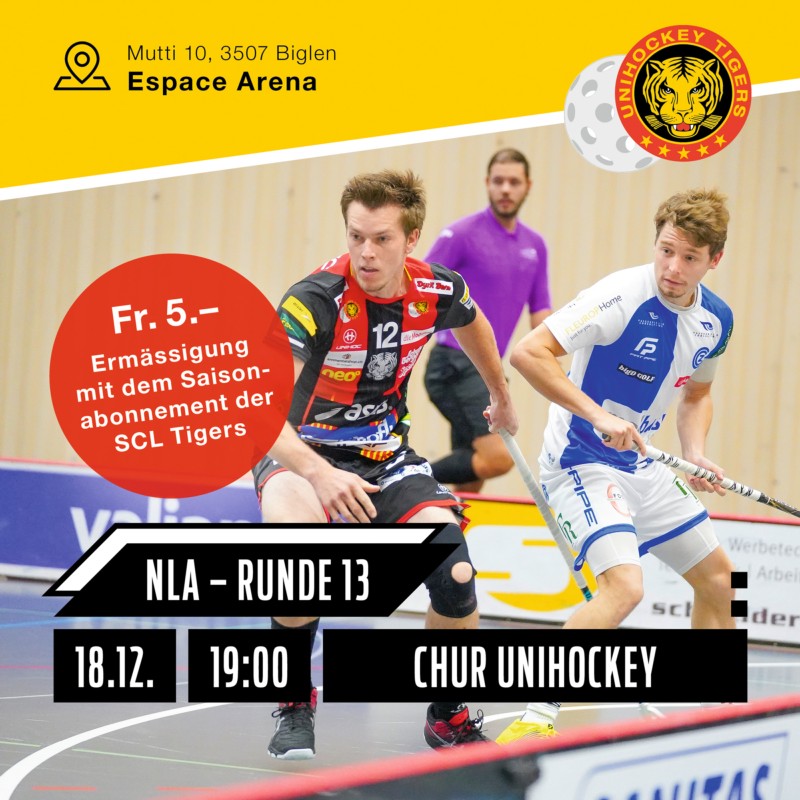 Verlieren verboten! Im letzten Heimspiel 2021 empfangen die Unihockey Tigers den direkten Playoff-Konkurrenten Chur Unihockey. Sei dabei und unterstütze die Unihockey Tigers in diesem wichtigen Spiel. Heja Tigers!