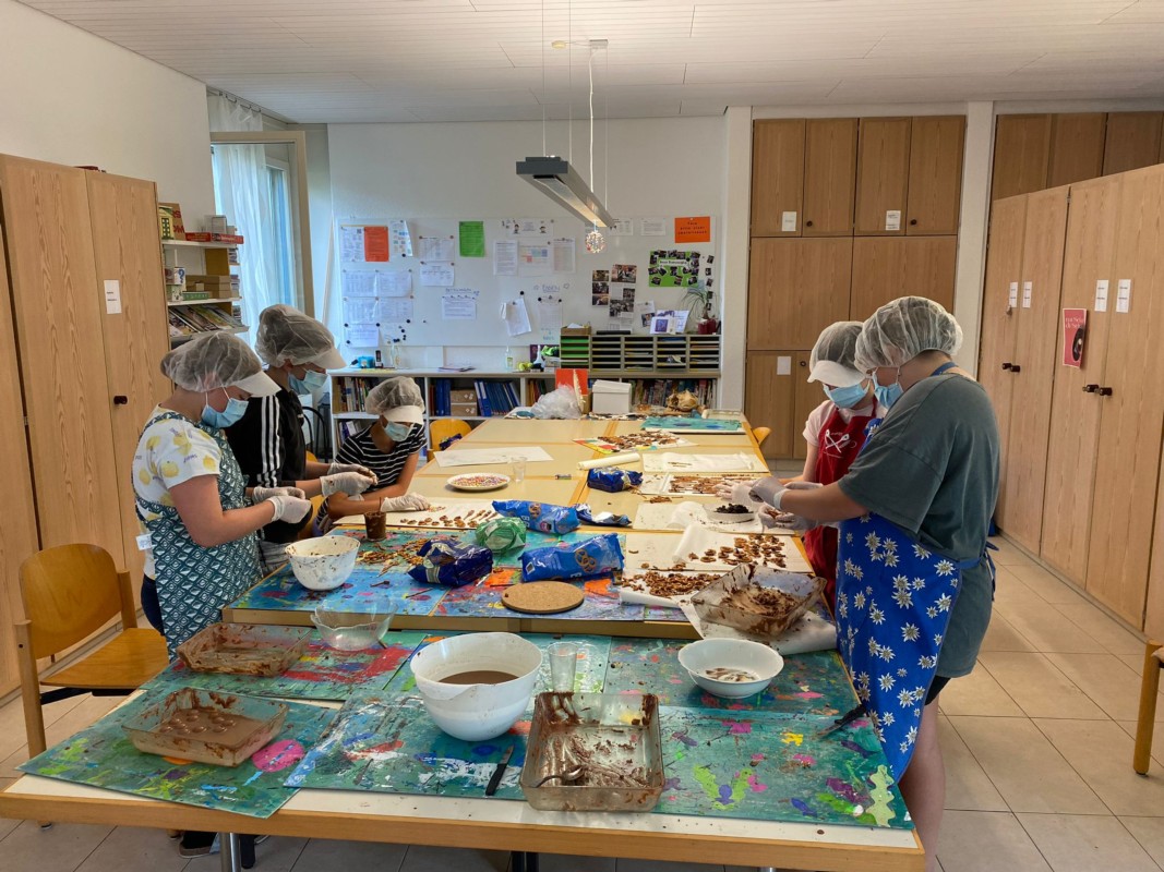 In NMG (Natur, Mensch und Gesellschaft) und anderen Lektionen machen wir uns daran, die besten Salzstangen und Brezel mit Schokolade überzogen herzustellen, uns um die Finanzen zu kümmern, mit den gewünschten Kunden zu kommunizieren, die Ware zu verkaufen, Marketing zu betreiben und uns die benötigten Materialien zu beschaffen.